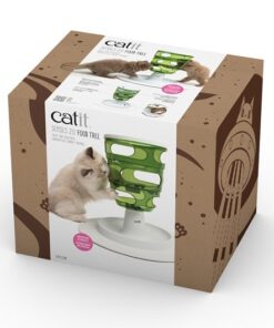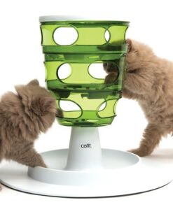 El árbol Catit Senses 2.0 es la solución de alimentación para gatos que tienden a comer rápidamente. Los gatos deben mover los pellet o golosinas desde la parte superior a la parte inferior del árbol, manoteando a través de las aberturas laterales.