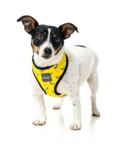 Arnés para perro con diseño Bananas confeccionado ergonómicamente para repartir la carga de forma perfecta en el tórax en lugar del cuello.