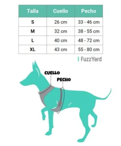 Tabla de medidas arnés Fuzzyard para perro: