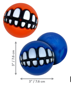 La talla L incluye una pelota chirriante y una rellenable para las golosinas favoritas de tu mascota y así aumentar la diversión, ¡ambas tienen la clásica sonrisa Grinz para un entretenimiento total!