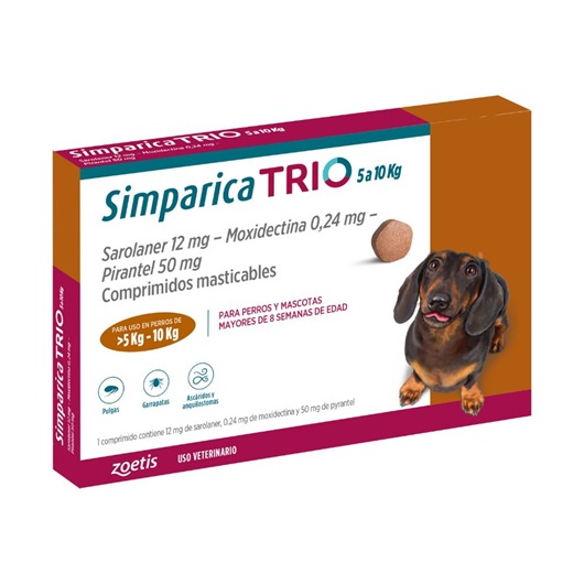 Simparica Trio 5 a 10 kg – Caja con 1 comprimido masticable.