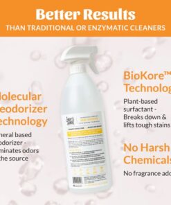 El quitamanchas de orina Honor de Skout elimina incluso las manchas y olores de orina más persistentes rápidamente. Es la solución ideal para el adiestramiento de mascotas nuevas o el cuidado de mascotas mayores, así como para cualquier otro percance cotidiano. Gracias a Bio-Kore® y un desodorizante molecular biodegradable, esta solución de acción rápida y fácil de usar descompone las manchas de orina y elimina las moléculas de olor de raíz. A diferencia de los limpiadores enzimáticos tradicionales, no caduca, no es sensible a la temperatura, no requiere pretratamiento y ofrece resultados profesionales en alfombras, tapicería y otras superficies resistentes al agua. Cumple con los estándares de Química Verde de California para brindar resultados excepcionales de forma segura.